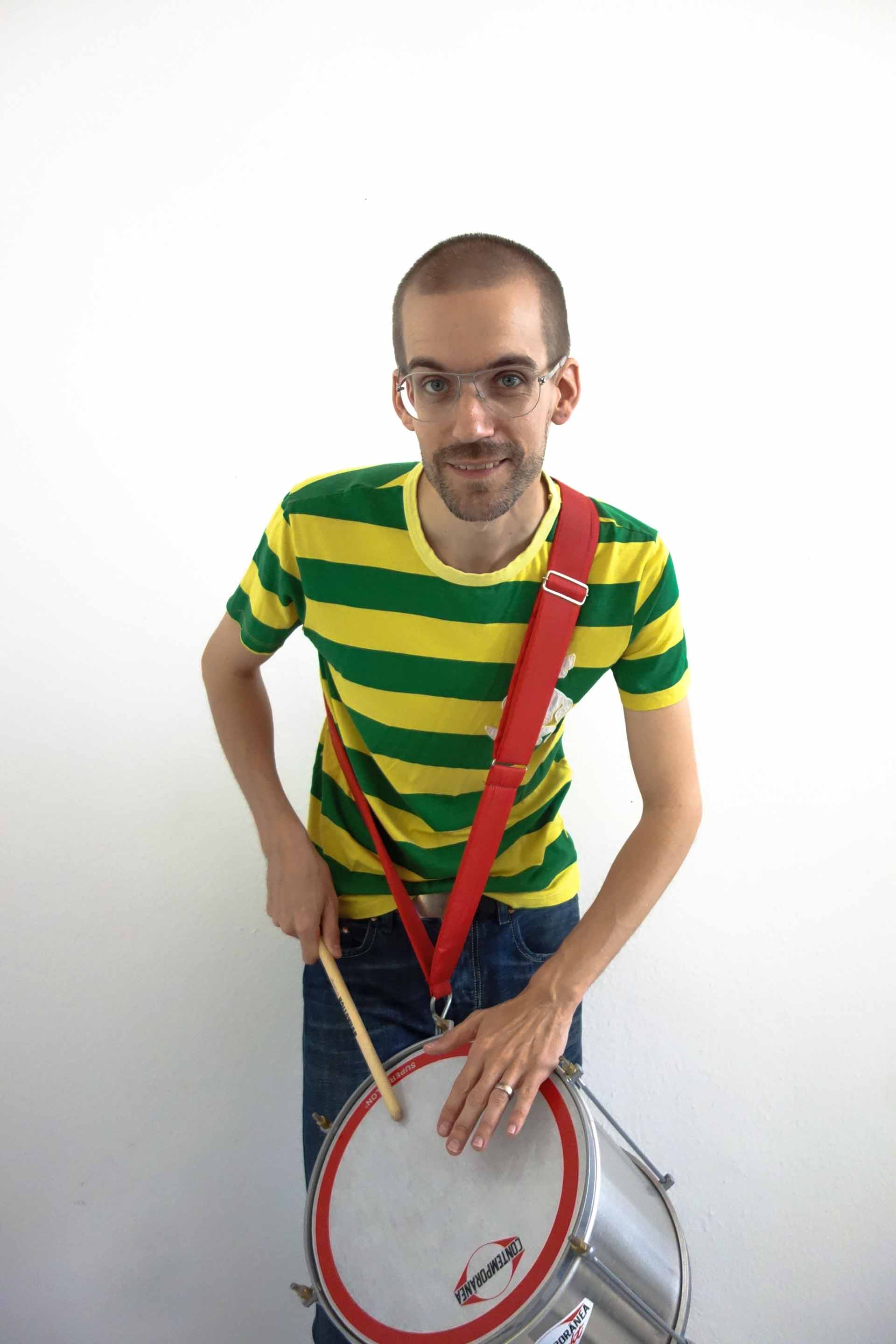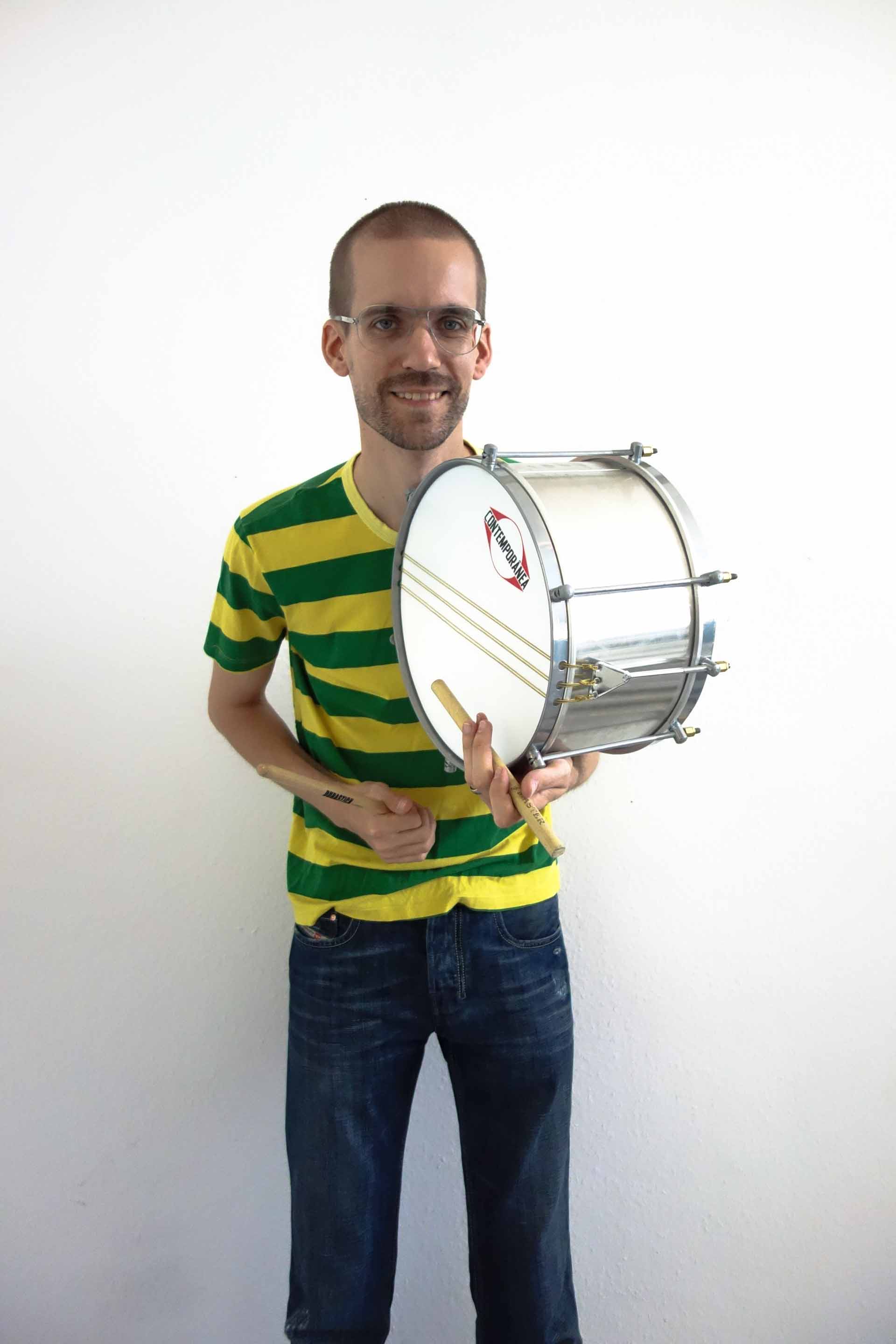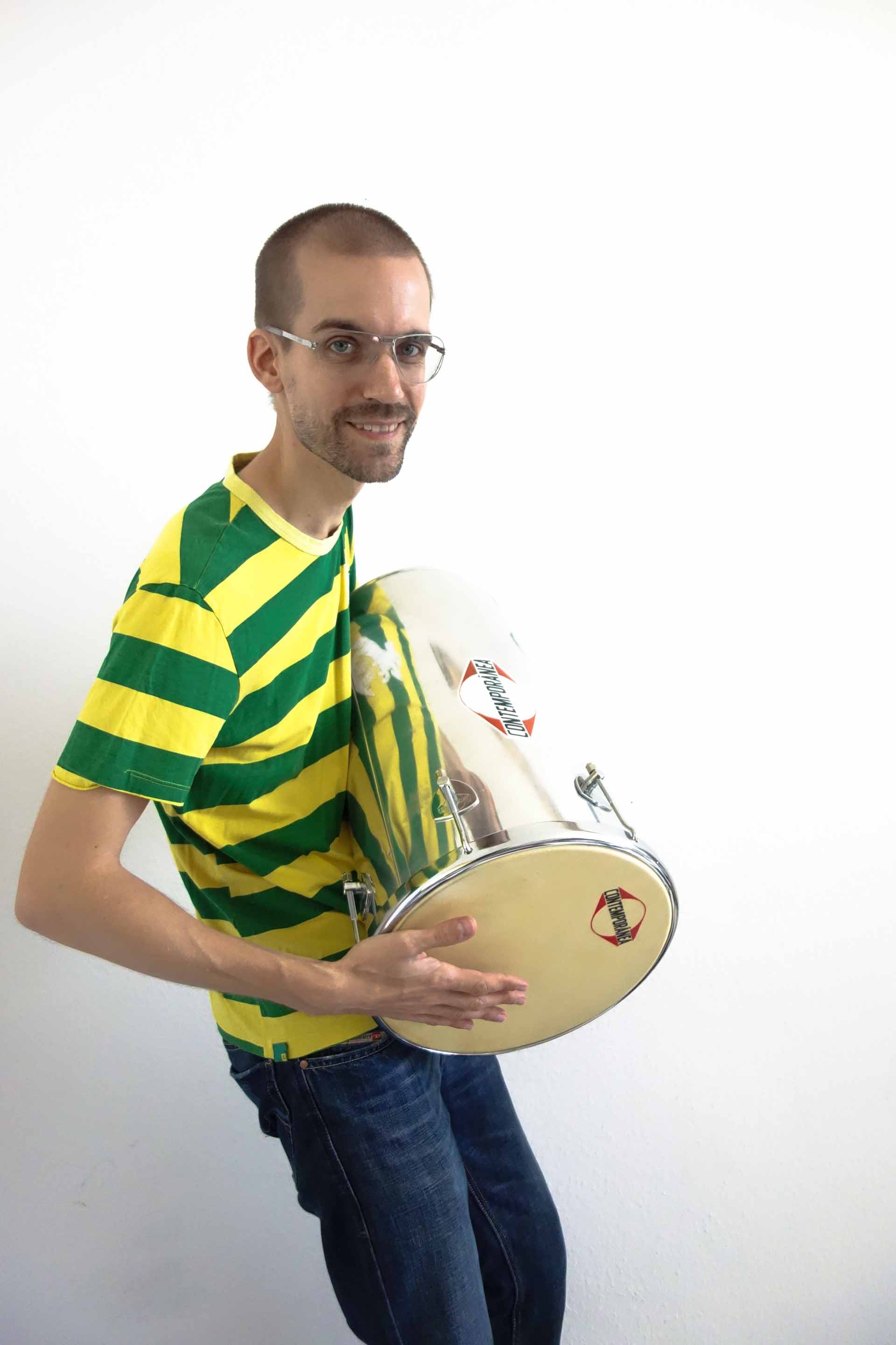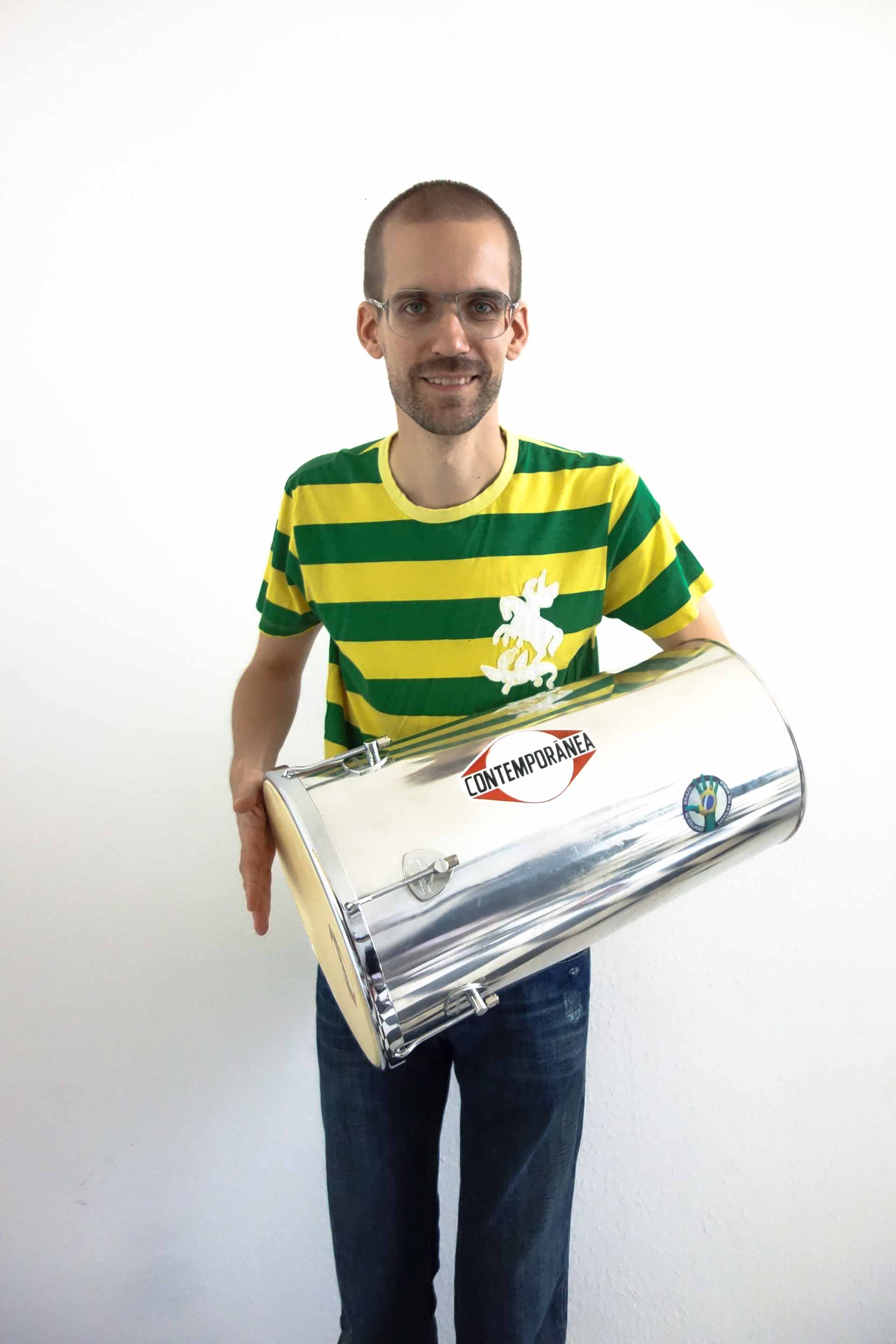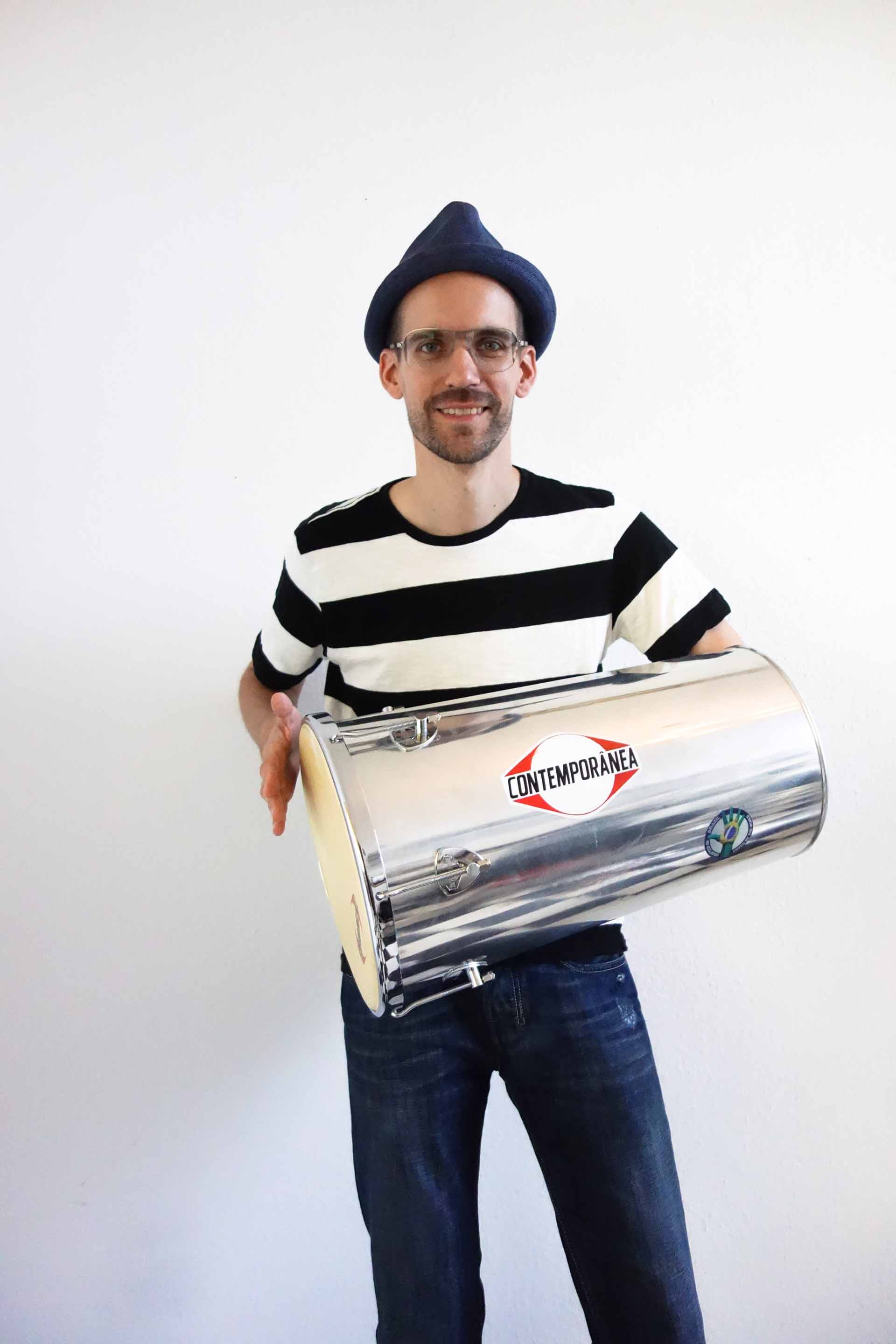 He began his career as a musician already as a child and with only 15 years, specialized in brazilian percussion. He played with famous artists like Dudu Nobre and Joyce Cândido, participated in intensive workshops in brazilian and cuban percussion with teachers like Dudu Tucci and Ravin Jayasuriya, played in groups such as Pimenta Malagueta, Tim Sein Lada and Cologne Street Beat, founded and directed the samba school Unidos de Colônia and the samba group Suco Legal and played percussion in the Samba Funk band Muamba.