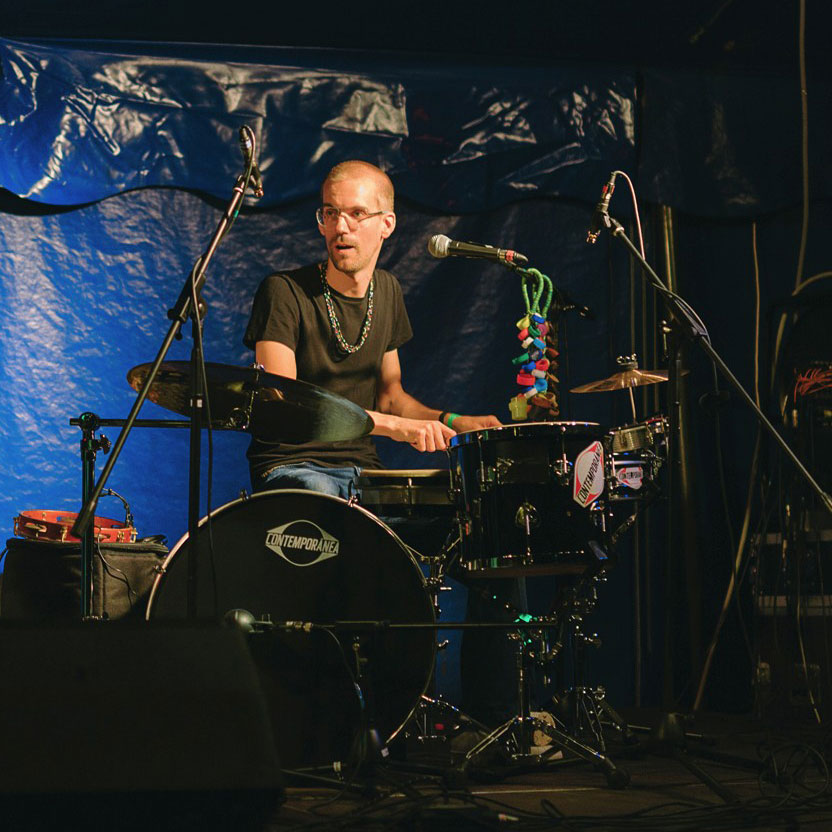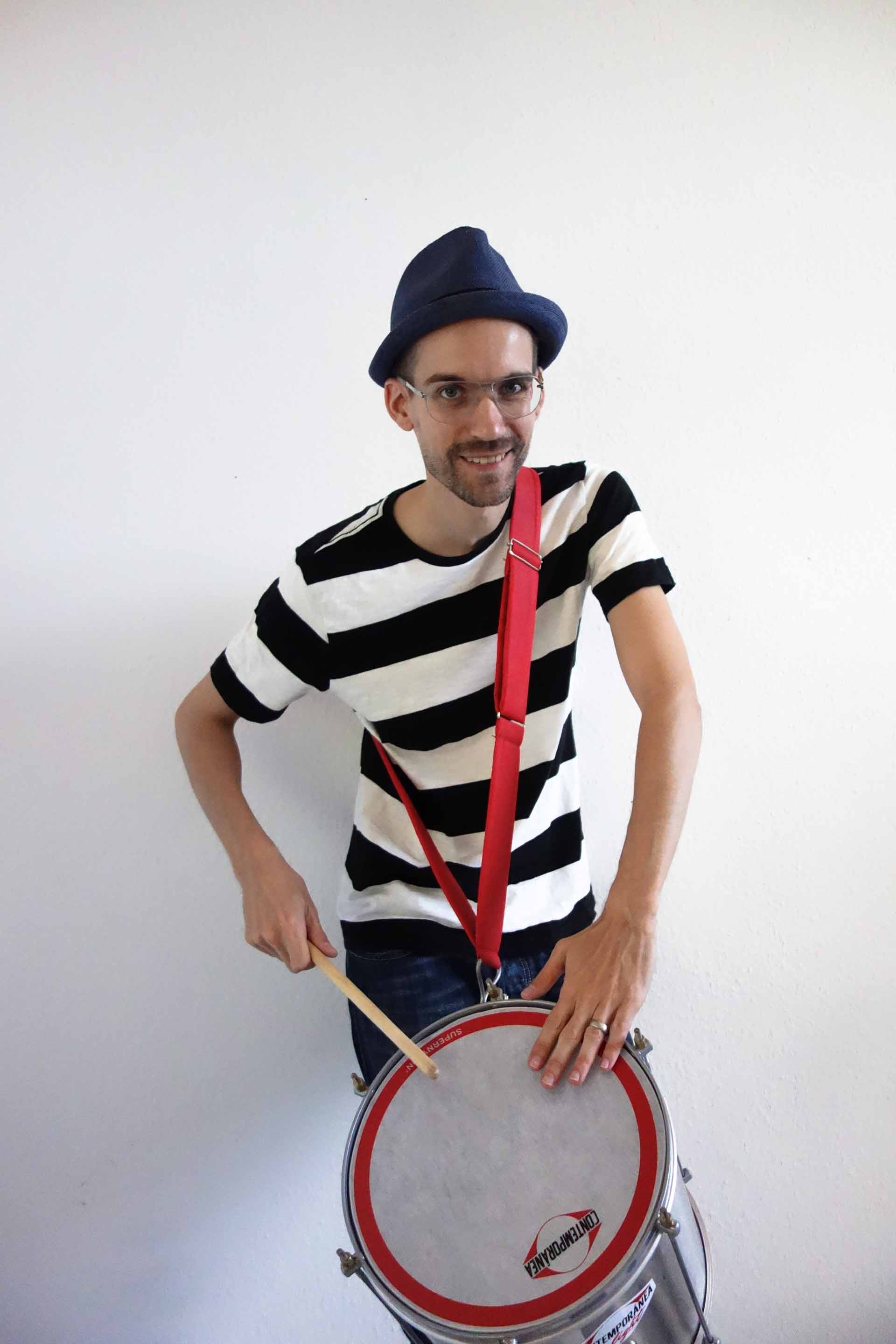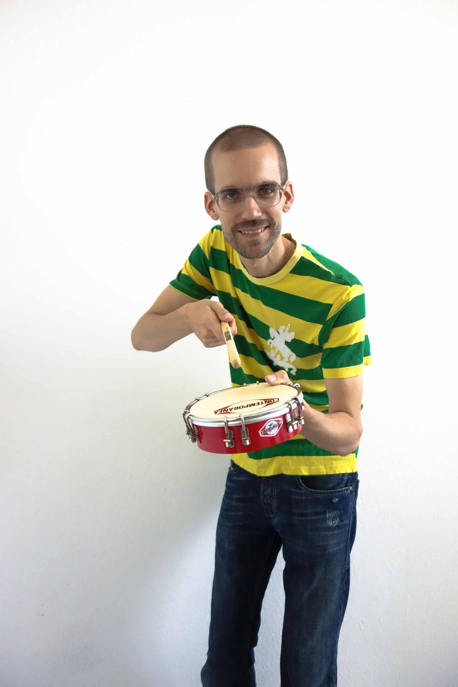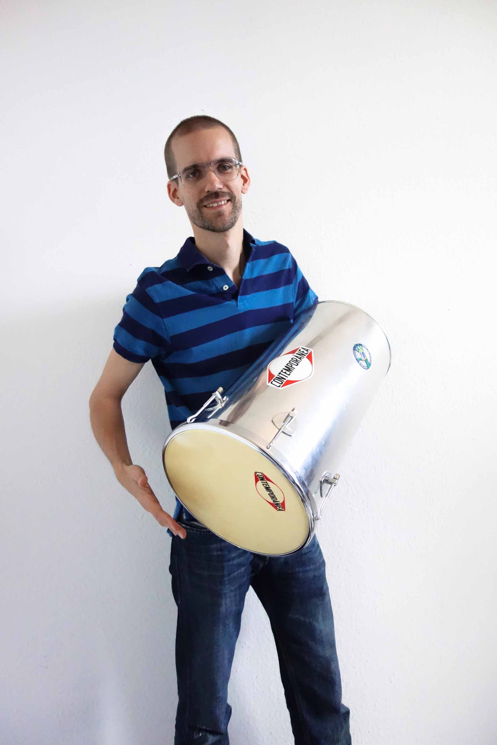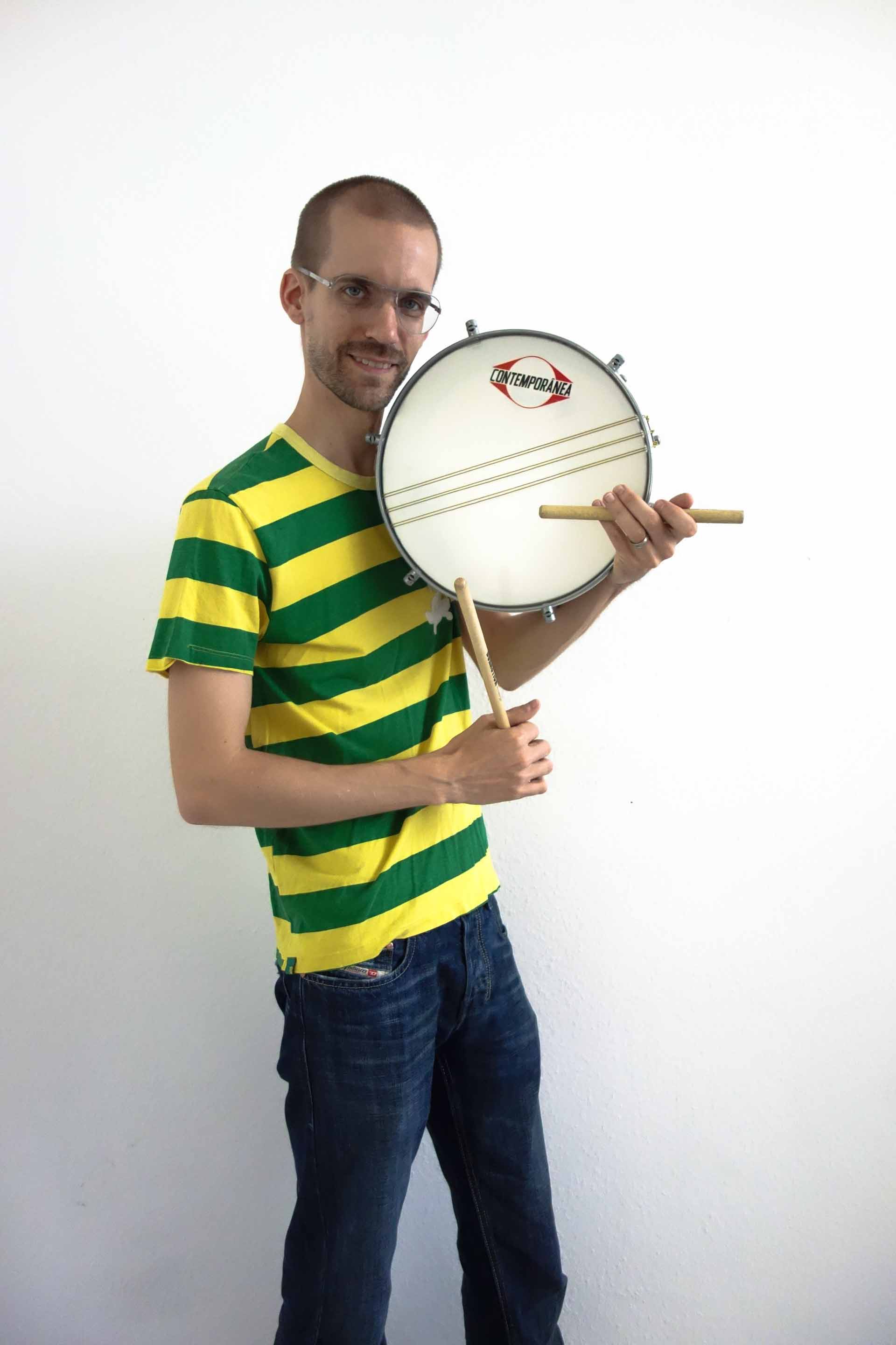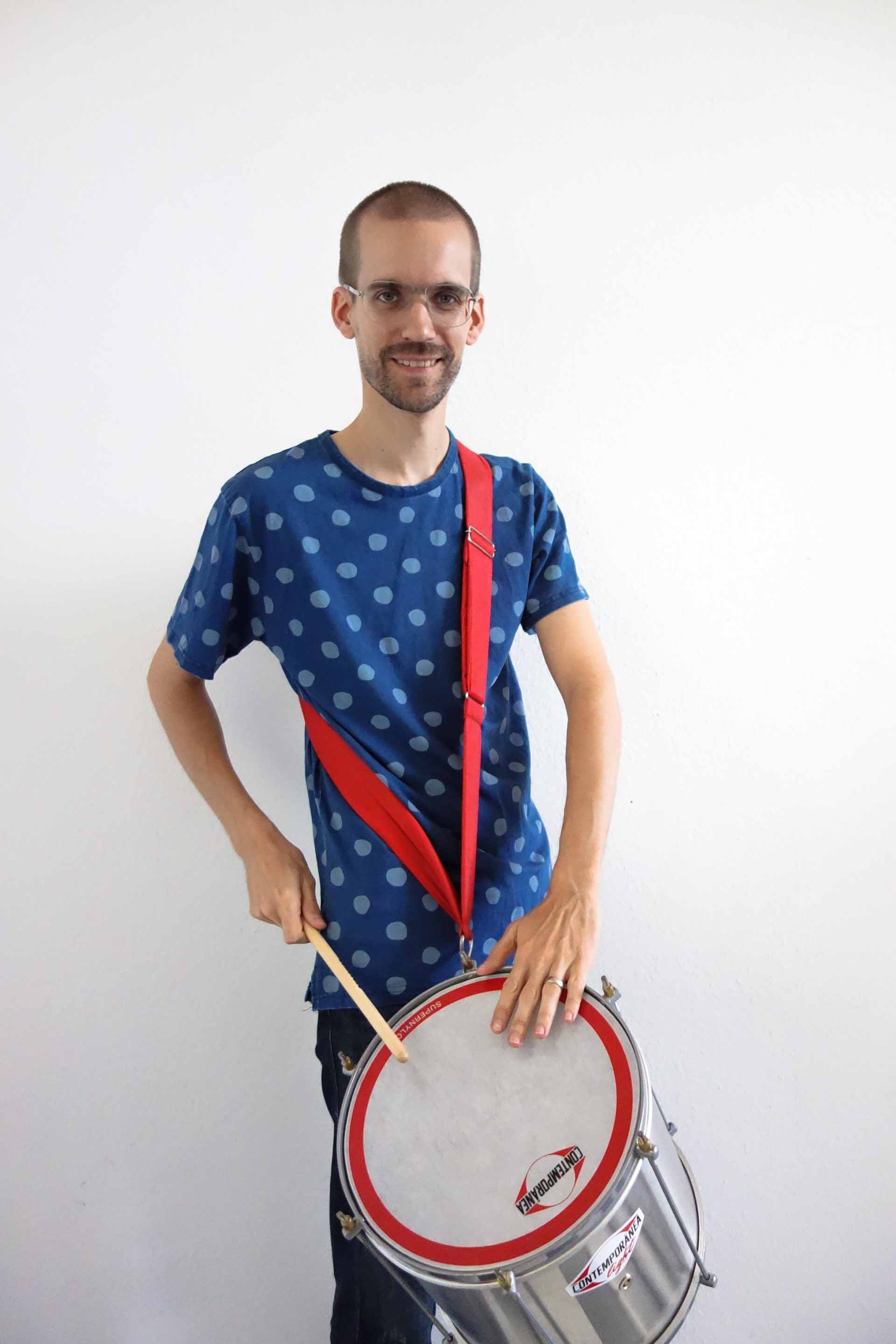He began his career as a musician already as a child and with only 15 years, specialized in brazilian percussion. He played with famous artists like Dudu Nobre and Joyce Cândido, participated in intensive workshops in brazilian and cuban percussion with teachers like Dudu Tucci and Ravin Jayasuriya, played in groups such as Pimenta Malagueta, Tim Sein Lada and Cologne Street Beat, founded and directed the samba school Unidos de Colônia and the samba group Suco Legal and played percussion in the Samba Funk band Muamba.