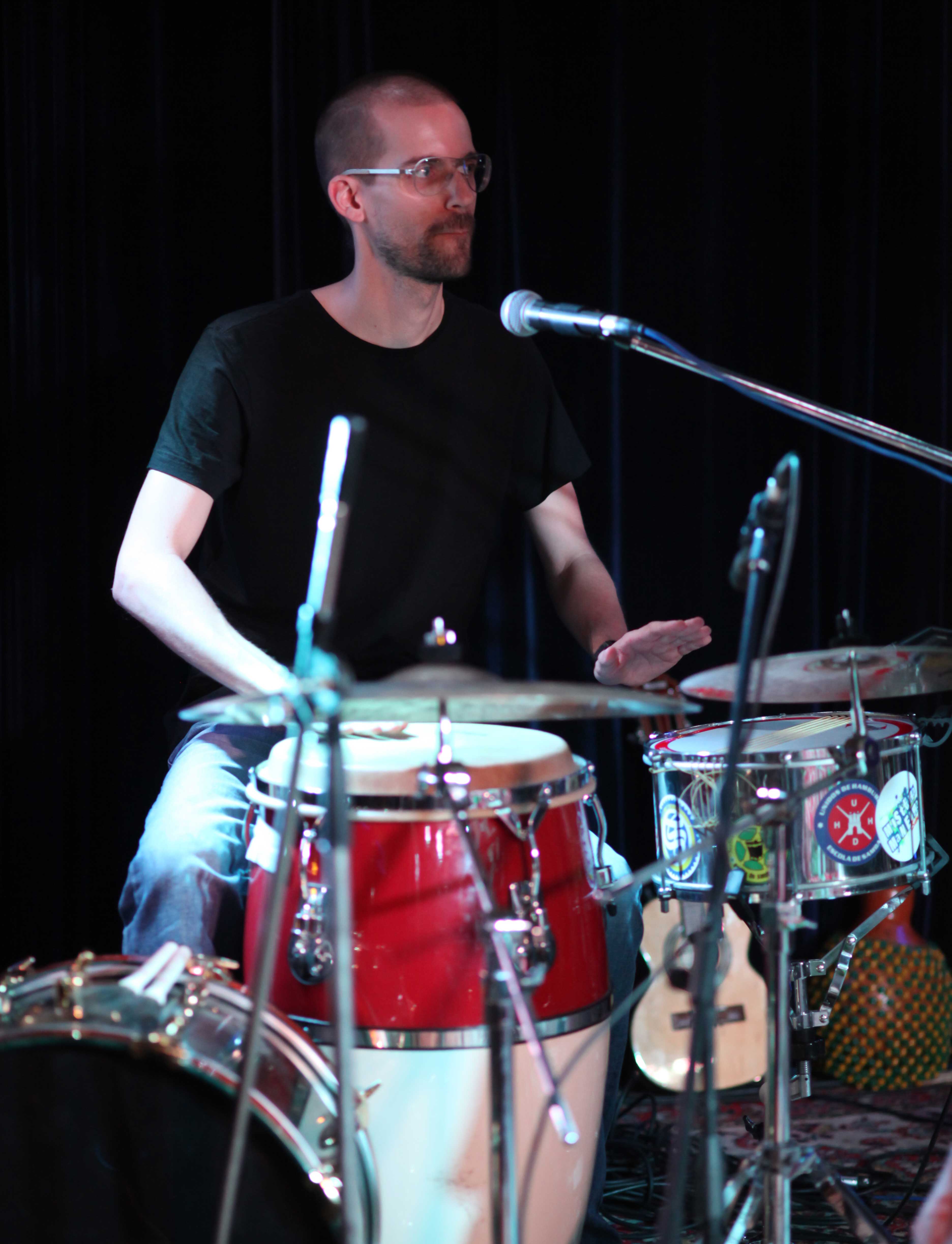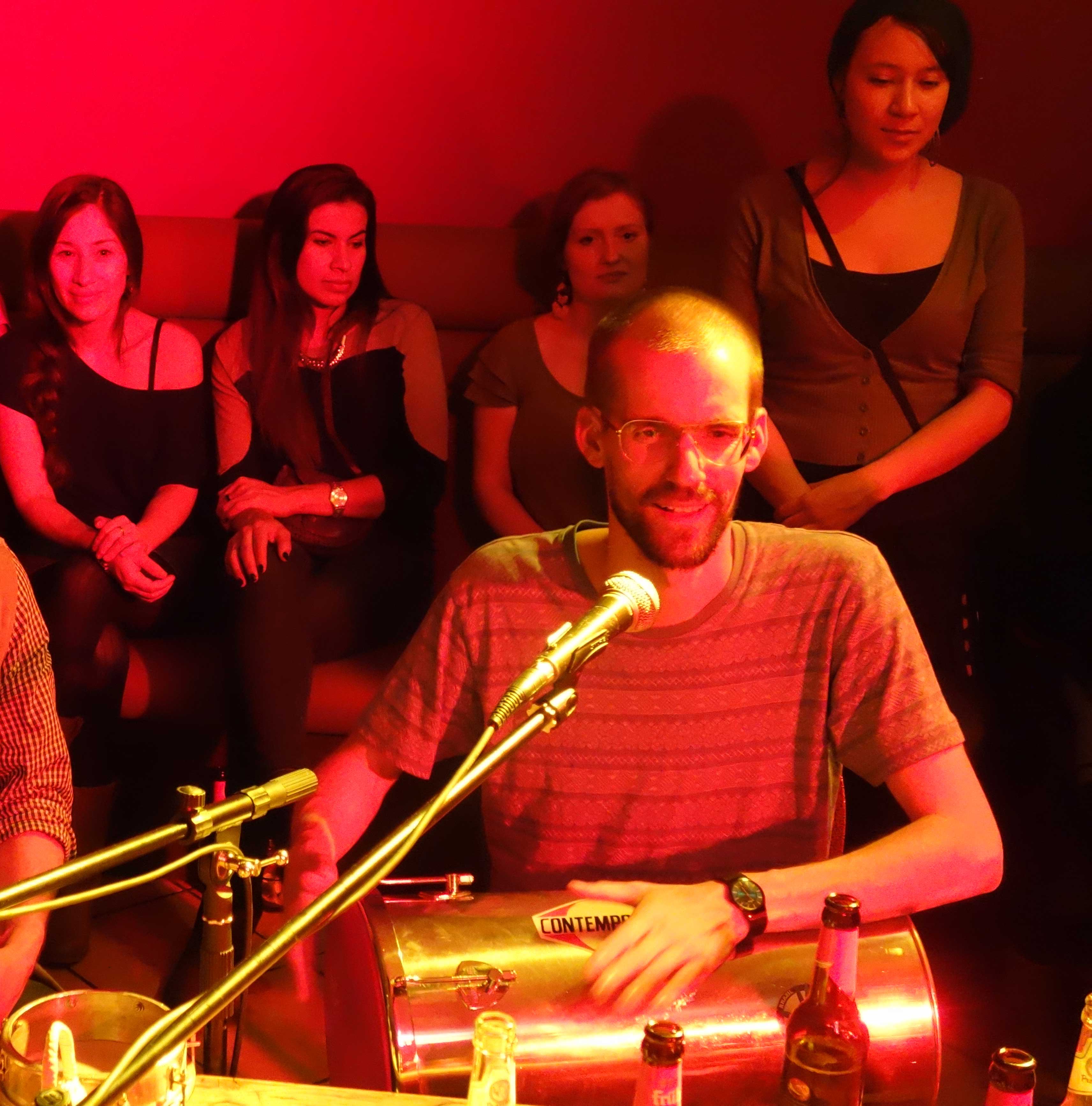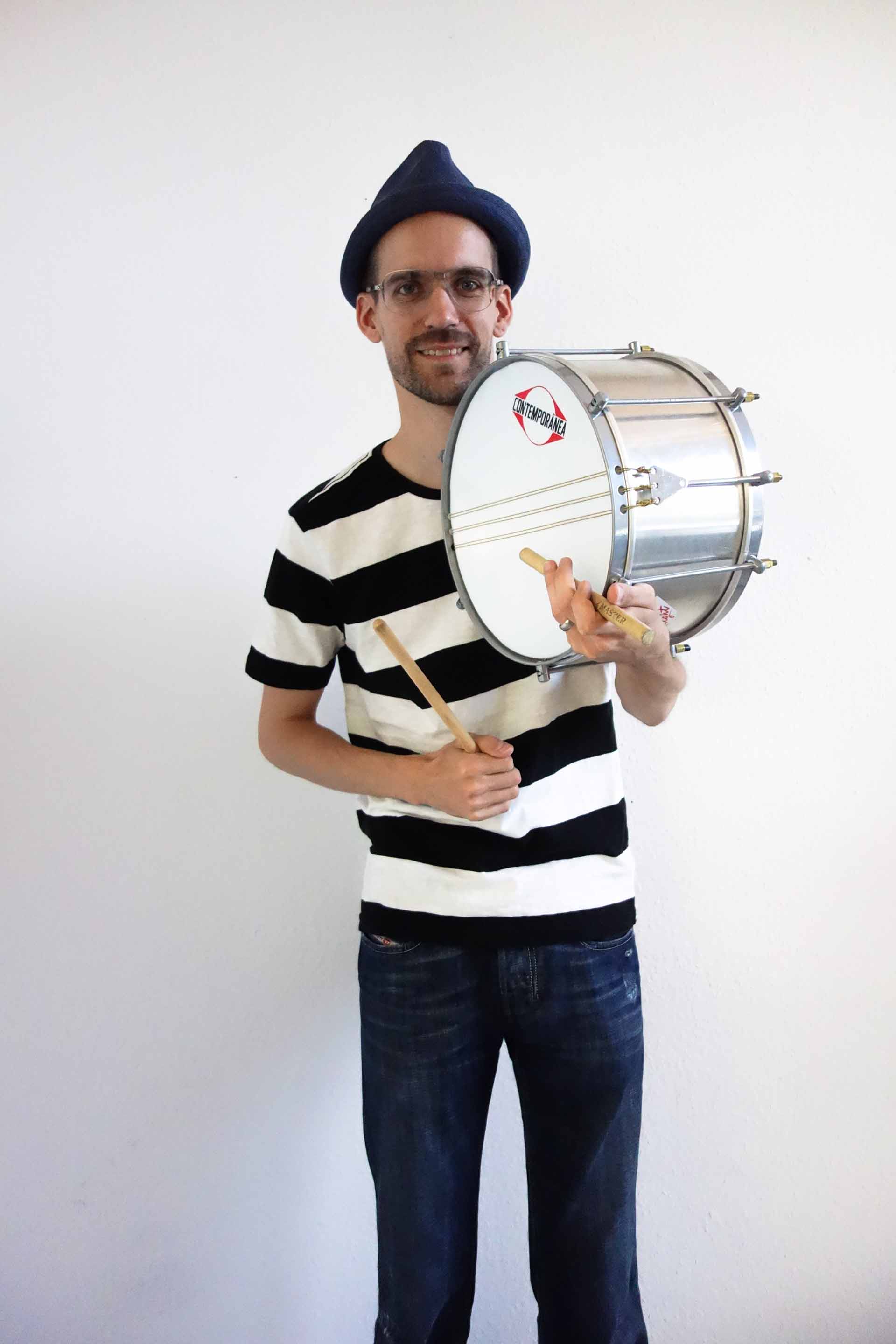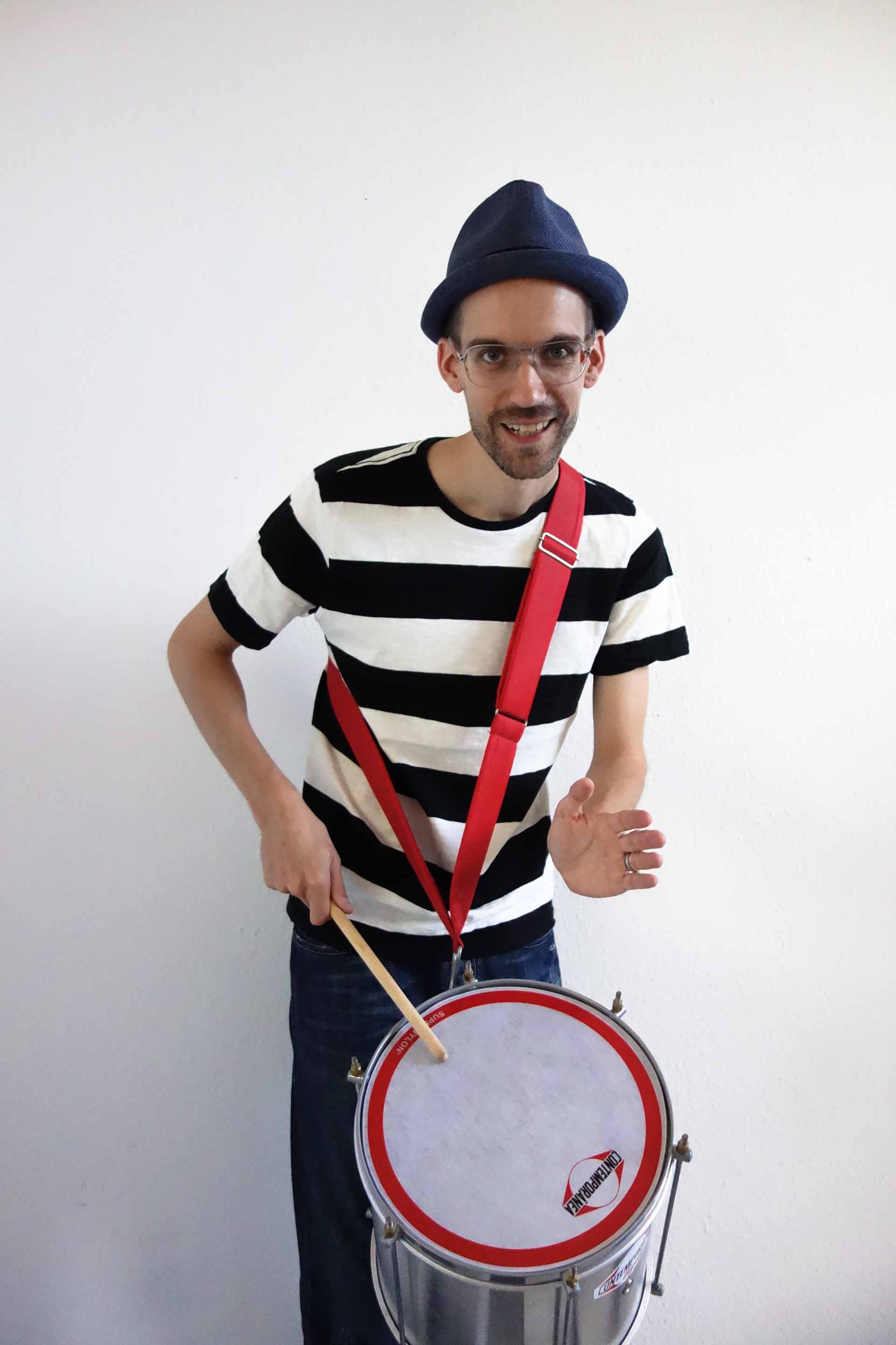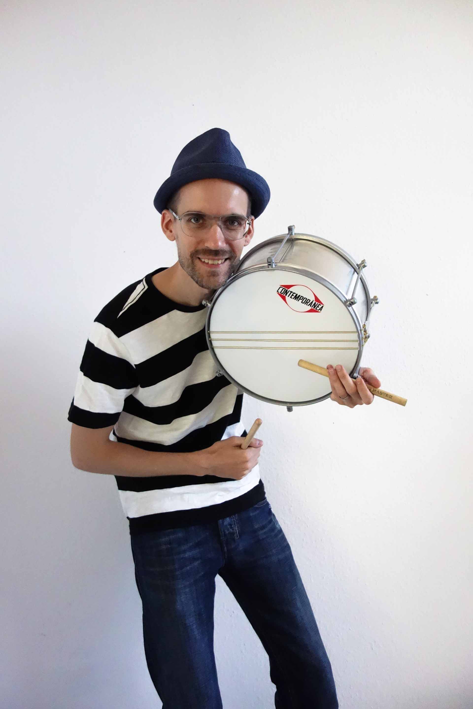 He began his career as a musician already as a child and with only 15 years, specialized in brazilian percussion. He played with famous artists like Dudu Nobre and Joyce Cândido, participated in intensive workshops in brazilian and cuban percussion with teachers like Dudu Tucci and Ravin Jayasuriya, played in groups such as Pimenta Malagueta, Tim Sein Lada and Cologne Street Beat, founded and directed the samba school Unidos de Colônia and the samba group Suco Legal and played percussion in the Samba Funk band Muamba.